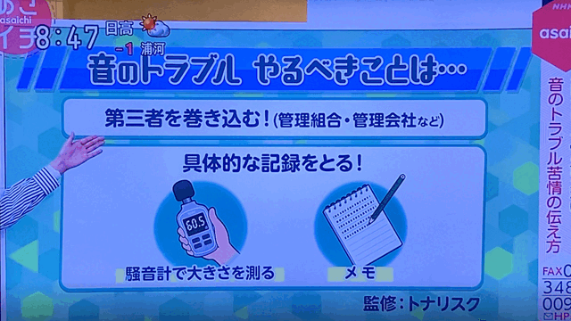 2023年2月22日放送の「あさイチ」の「音のトラブル苦情の伝え方」コーナーで、当社が監修として出演しました。